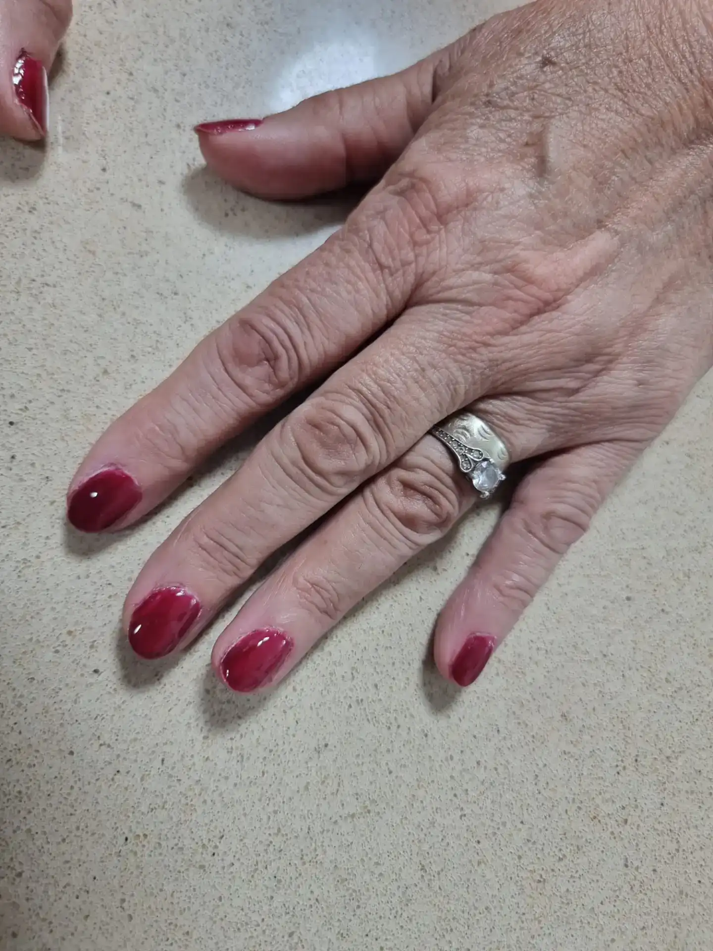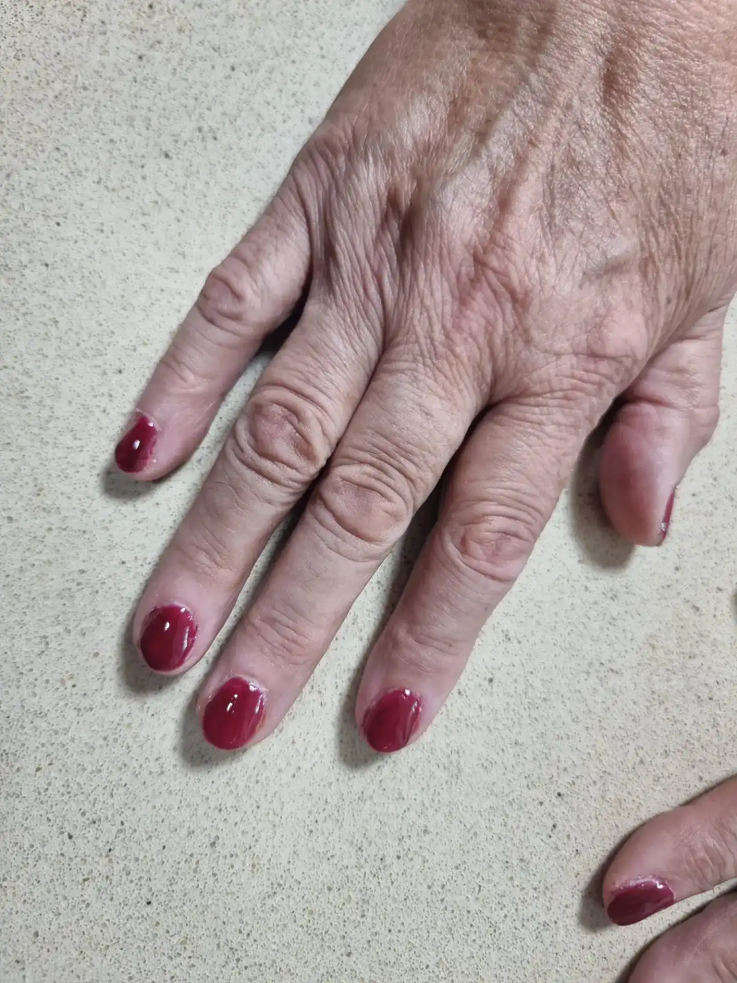 מניקור קלאסי בגוון יין עמוק למראה אלגנטי ומטופח.